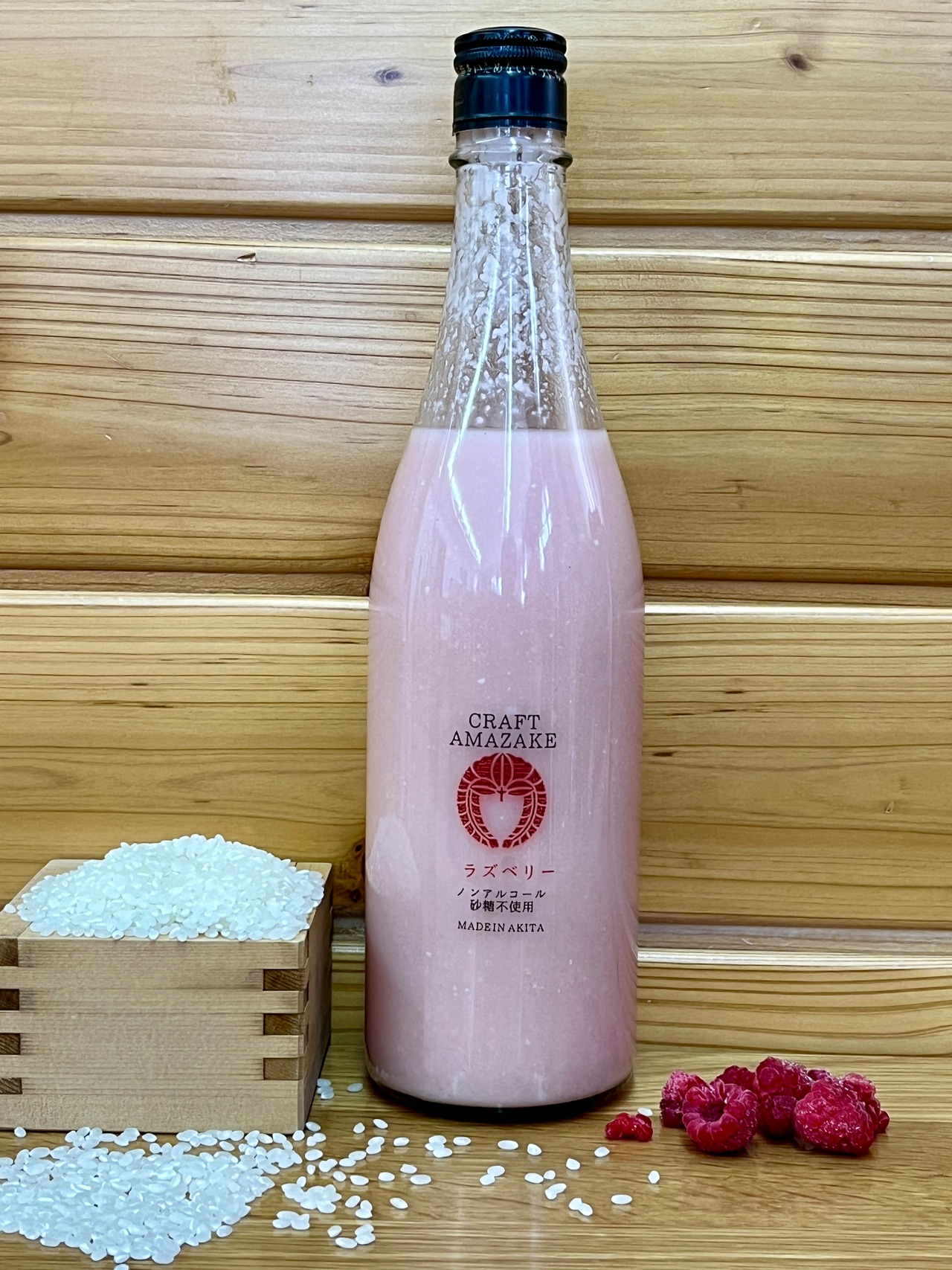 秋田県オリジナル麴「あめこうじ」を使用し手造りで仕込んだあまざけに、二ツ井町産の希少なラズベリーを加えた砂糖不使用、ノンアルコールのあまざけです。